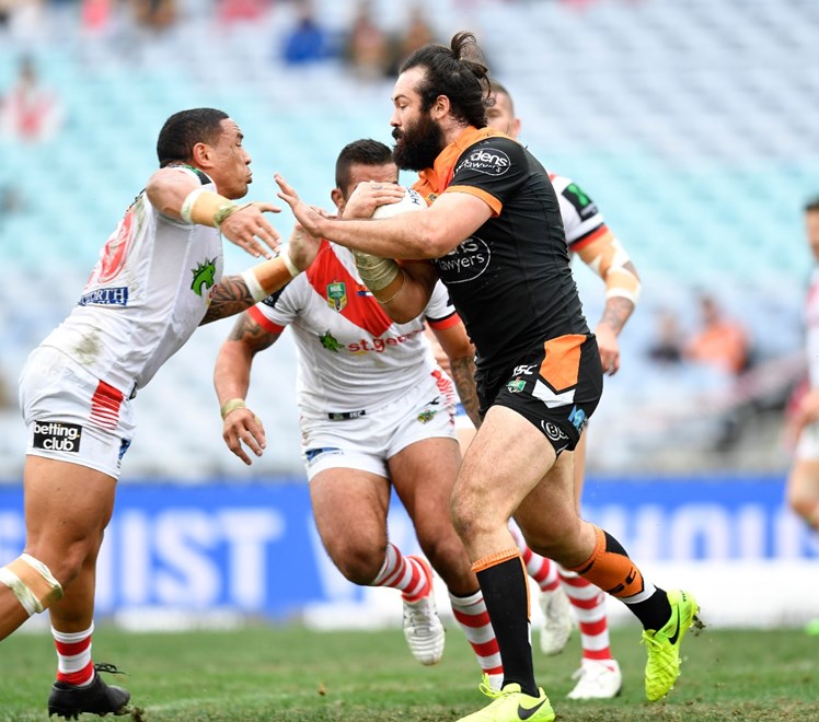 As the two fullbacks faced off Tedesco had a fine individual performance, but opposite number Dugan had the last laugh as the Dragons prevailed 16-12. As for the Tigers' skipper Woods, he was exceptional in a losing outfit, second only to Martin Taupau in offloads (4) and to Trent Merrin in running metres (198) among NSW-eligible forwards on the weekend.