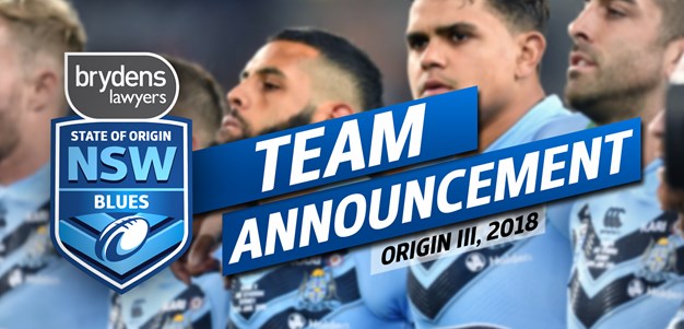 The Brydens Lawyers NSW Blues team for Origin III, 2018 is as follows: