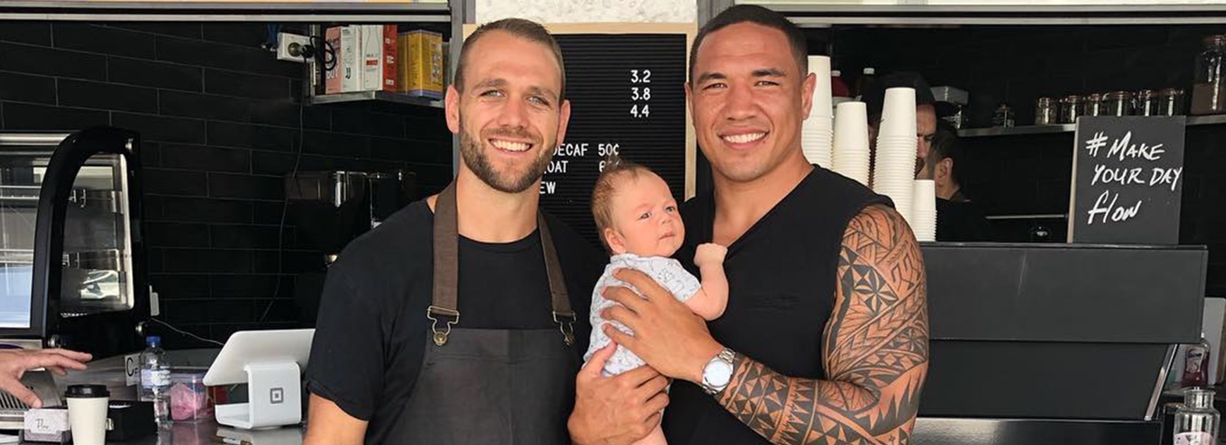 Brydens Lawyers NSW Blues backrower Tyson Frizell took his infant son Axton to visit his former Dragons teammate and the player affectionately known as 'Gypsy' at the official opening of his new business, Flow Espresso, at the Dragons' spiritual home in Kogarah.