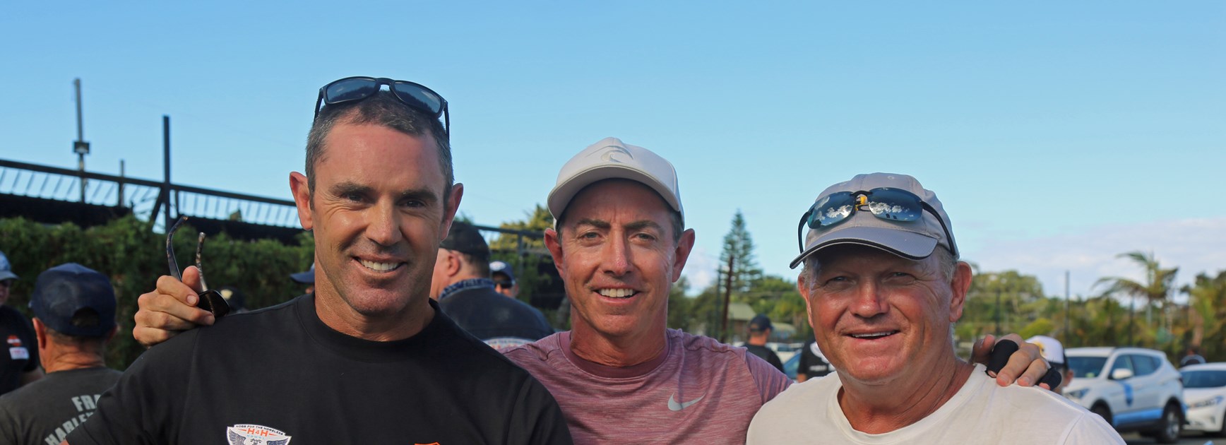 The three Penrith legends caught up for the first time in four years during the annual Hogs For The Homeless tour, which was founded by Fittler and True Blue Nathan Hindmarsh and has seen almost $700,000 raised for Father Chris Riley’s Youth off the Streets.