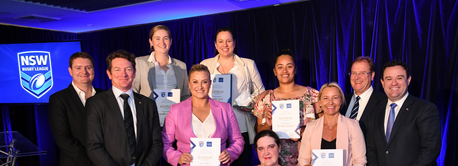 The NSW Minister for Sport, the Hon. Stuart Ayres MP has celebrated the graduation of the first intake of women coaches – including Harvey Norman NSW Sky Blues head coach Kylie Hilder and assistant Ruan Sims – from the joint NSWRL-University of New England (UNE) Women In Sport Leadership program.