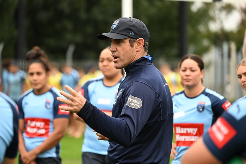 One feature of the combined Country-City training session at NSWRL’s Ignite HQ Centre of Excellence on Wednesday was Brydens Lawyers NSW Blues coach Brad Fittler taking over certain drills with the help of fellow True Blues Mark O’Meley, Luke Lewis, Brett Kimmorley (now Wests Tigers Harvey Norman NSW Women’s Premiership coach) and Craig Wing.
