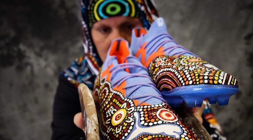 The 30-year-old received the Puma boots from Indigenous artist and performer Daren Dunn.
